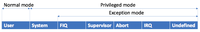| 1 | User | USR | Usual ARM program execution state, and is used for executing most application programs |