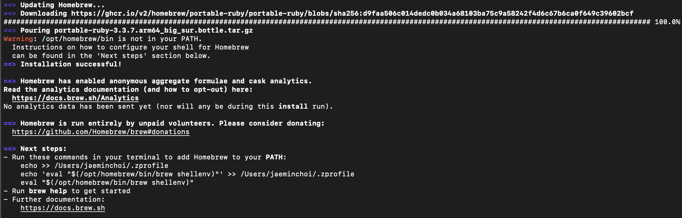 MacOS에서 사용하는 소프트웨어 패키지 관리자 툴이다. Homebrew(홈브류)를 사용하면 terminal에서 명령어 입력만으로도